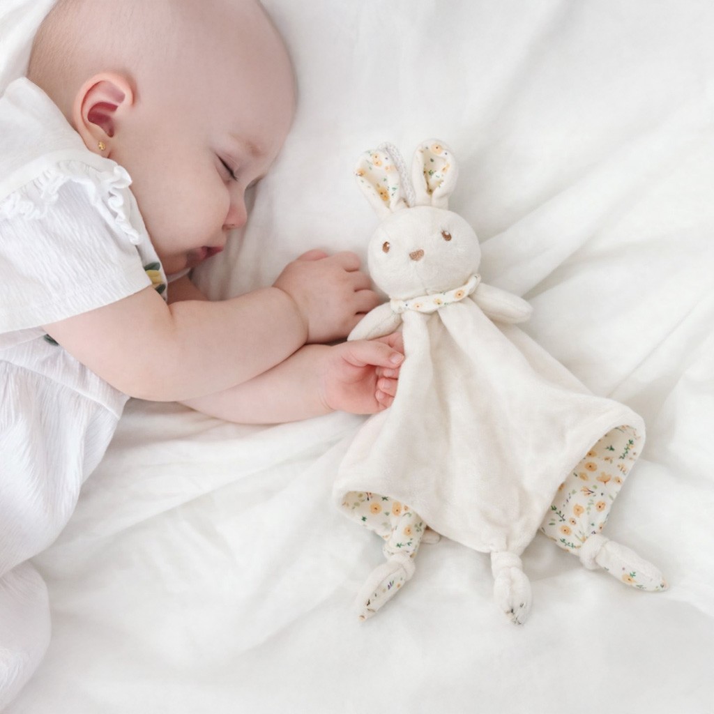 Dudú de bebe en forma de peluche conejito de tacto suave y con graciosas orejitas a juego con los otros elementos de a coleccion. EL dudu es un juguete de apego que permite al bebe sentirse seguro con el cual establece un vinculo afectivo.