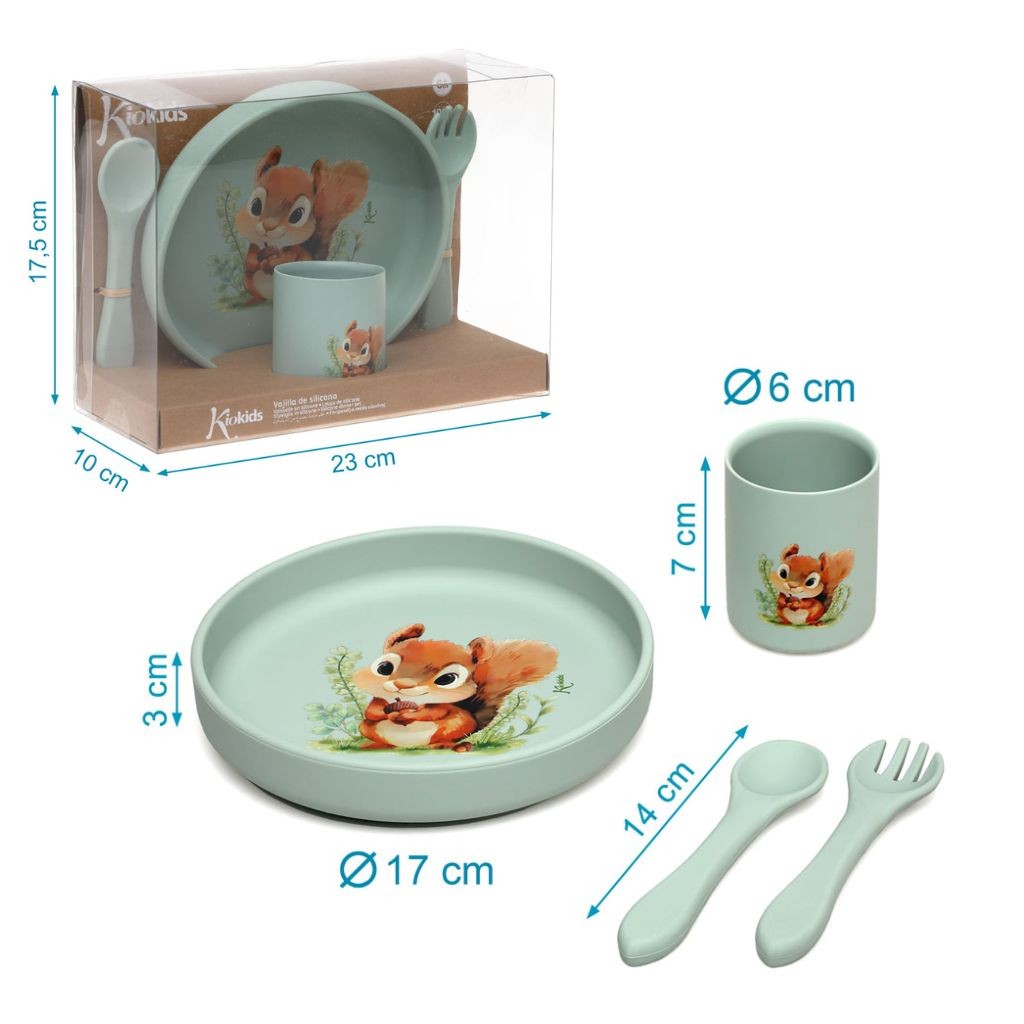 Vajilla bebe silicona 4 piezas ardilla salvia Kiokids