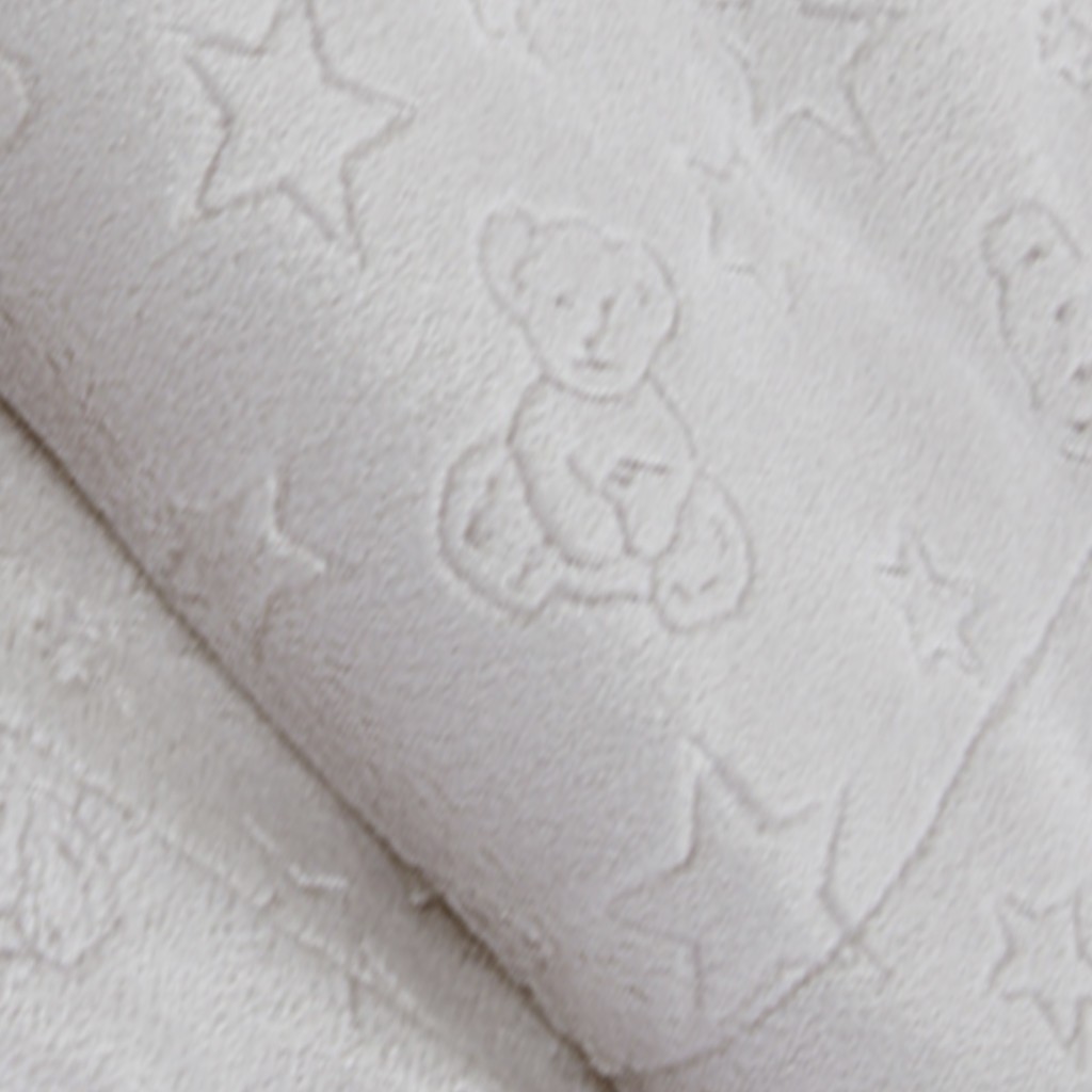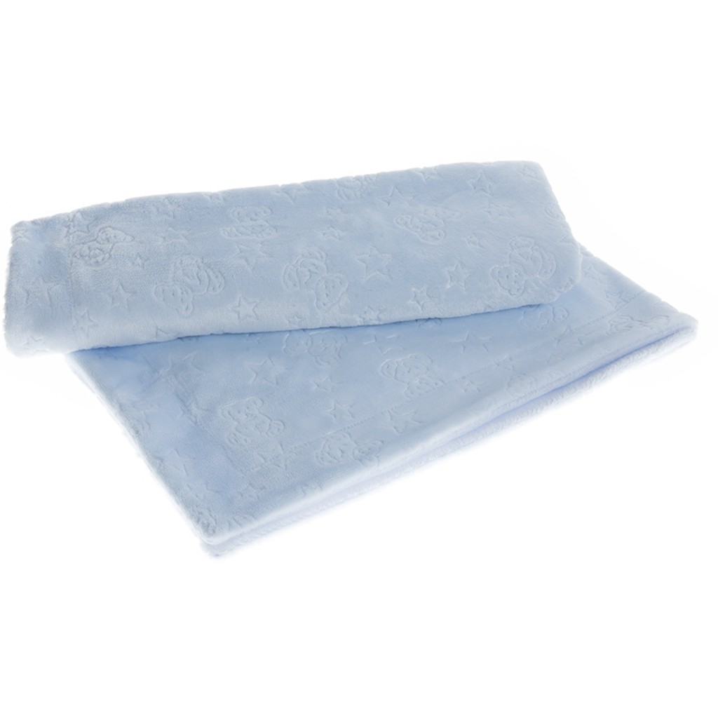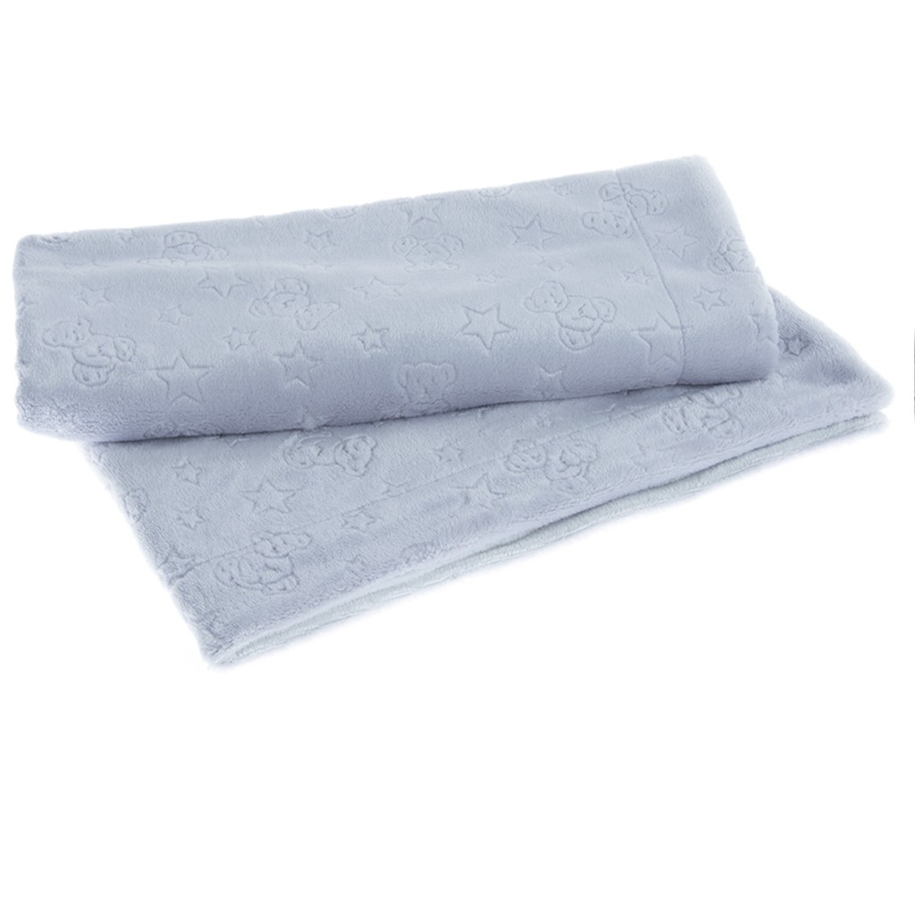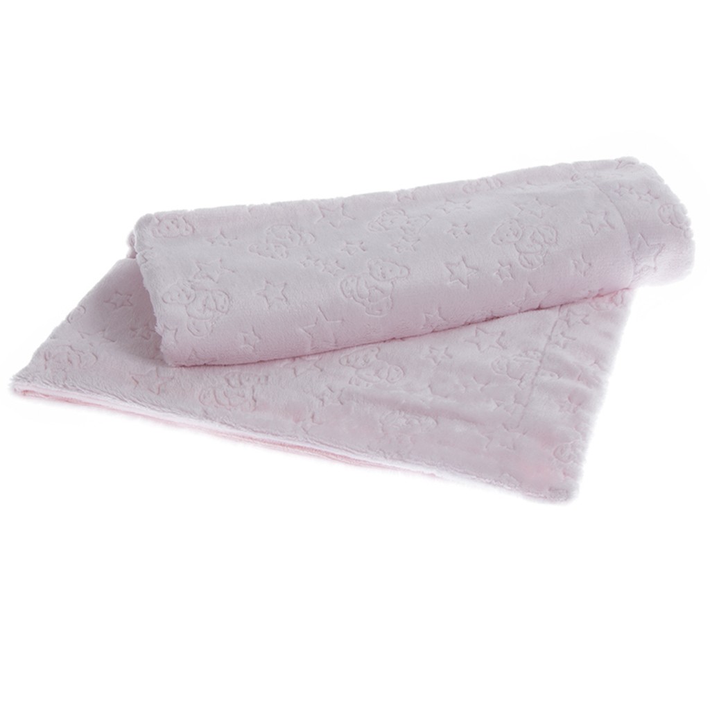 Manta de bebe de suave y calida coralina labrada con dibuos de ositos. Se envia en caja ideal para regalo. Medidas 80 x110.